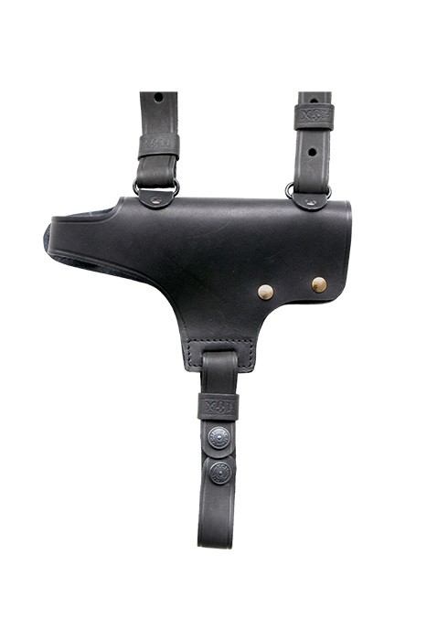 Кобура изготовлена из натуральной кожи, обладающей уникальными характеристиками. Этот материал не боится влаги, ультрафиолета, а также ружейного масла. Корпус пистолета полностью погружается внутрь, снаружи остается только рукоятка. Застежка, фиксирующая оружие, представлена ремешком с кнопкой.