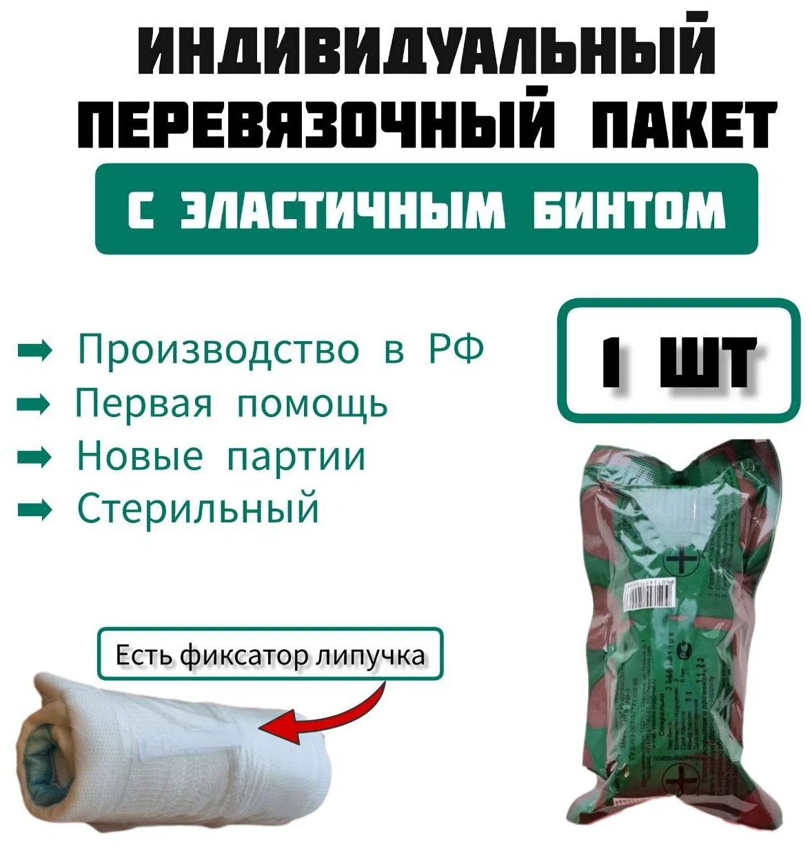 Пакеты состоят из одной подушечки (неподвижной) или из двух подушек (подвижной и неподвижной) и фиксирующего эластичного бинта. Размер подушечек ППИ (см) 15 х 25. Размер эластичного бинта – 3 м х 7 см. Эластичный бинт обеспечивает простоту наложения, надежность и стабильность фиксации на различных участках тела, в том числе и со сложной конфигурацией и роль компрессии.